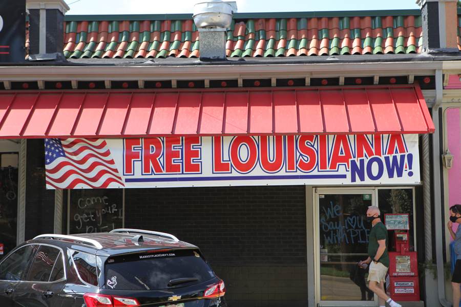 Back in mid-July, I drove past our local pie shop. I considered the banner that hung above the front entrance: FREE LOUISIANA NOW!